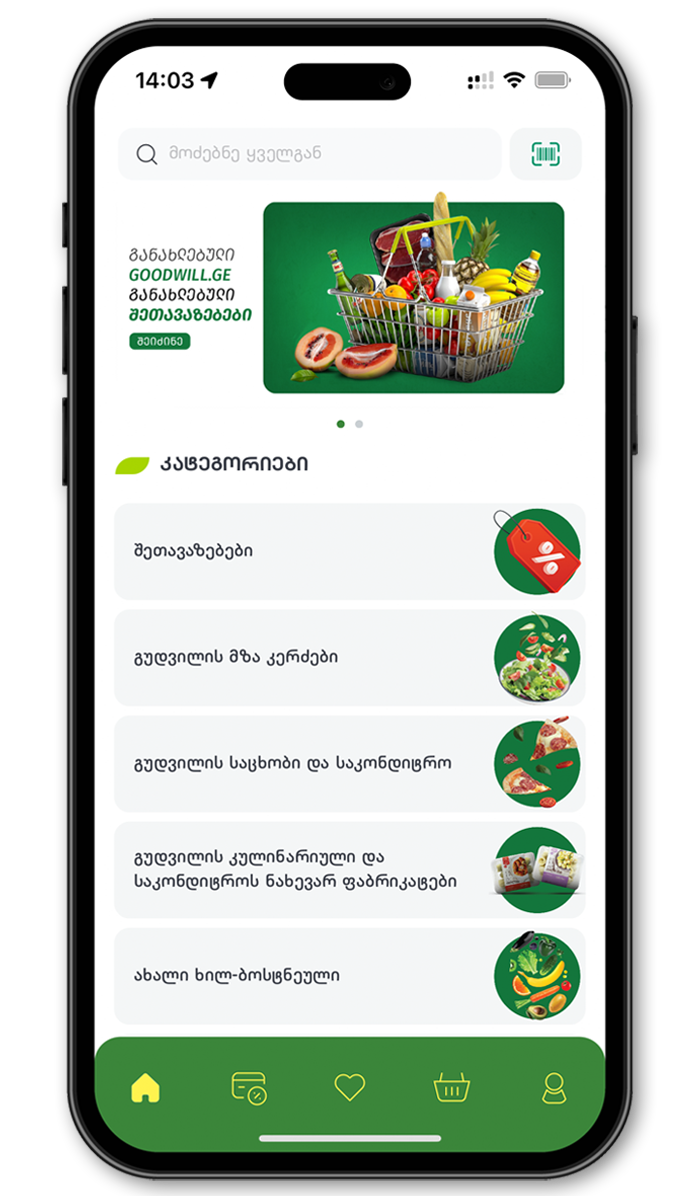 აპლიკაციასა და ვებგვერდზე აღმოაჩენთ სხვადასხვა ტიპისა და კატეგორიის ყოველდღიურად განალხებად პროდუქტებს